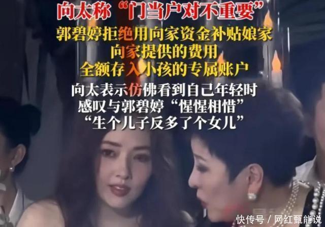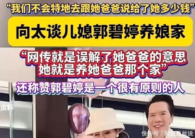 根据郭碧婷父亲的意思,郭碧婷一个人赚钱养家,还要照顾两边家庭,他非常心疼, 向太则正面回应,称郭碧婷是一个有原则的人, 夫妻两人的小家庭,向家会尽力扶持,但是娘家的钱需要郭碧婷自己赚!